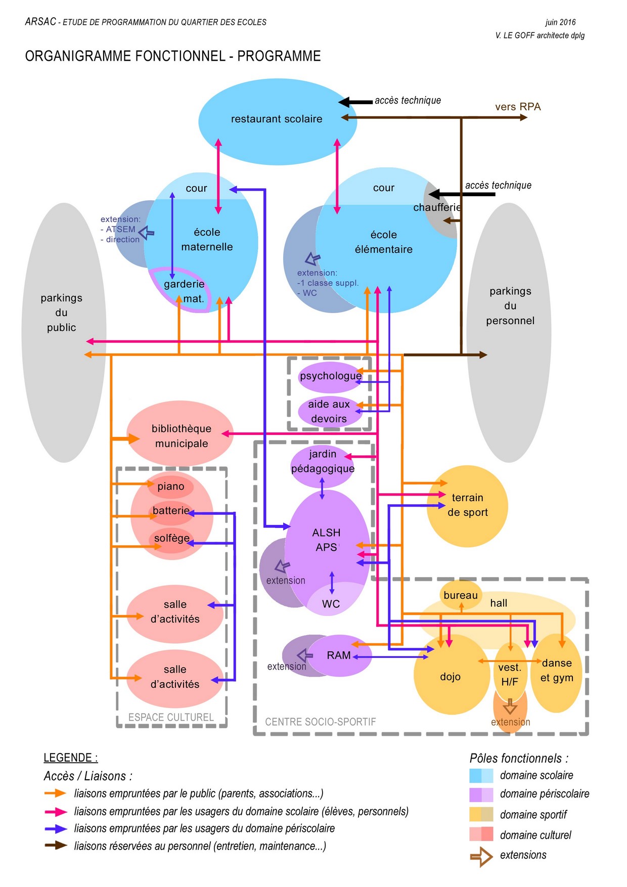 Mission de programmation du quartier des écoles, à Arsac Maître d’ouvrage : Commune d’Arsac Equipe : V. LE GOFF architecte et programmiste Calendrier : 2016